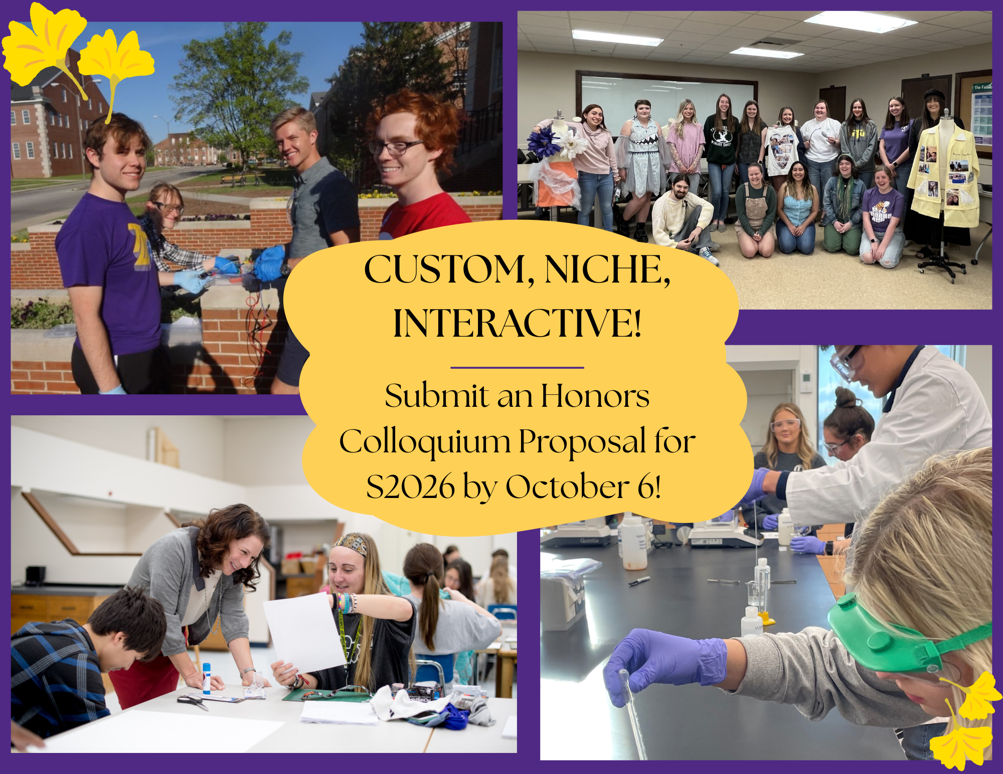 Have a dream course outside of Tech’s typical offerings that you’re passionate about? Consider proposing an Honors Colloquium! In these 3-cr. hr. discussion-based courses, exciting topics combine with Honors students to create a unique and fulfilling experience. Past examples include Science of Hunger, Human Body & Visual Art, and Astrophotography. Teaching teams are welcome. Click here for more details! Email Honors Director Lindsey Roberts at LRRoberts@tntech.edu with any questions.