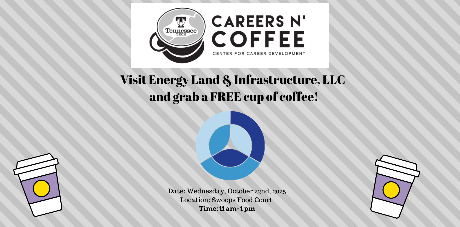 Take a break and enjoy a FREE cup of coffee while speaking with recruiters from Energy Land & Infrastructure on Wednesday, October 22, at 11 AM in the RUC’s Swoops Food Court.