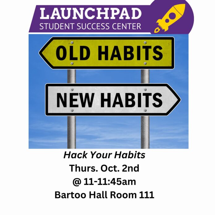 The Launchpad Student Success Center will host “Hack Your Habits” from 11 a.m. to 11:45 a.m., Thursday, Oct. 2, in Room 111 in Bartoo Hall.