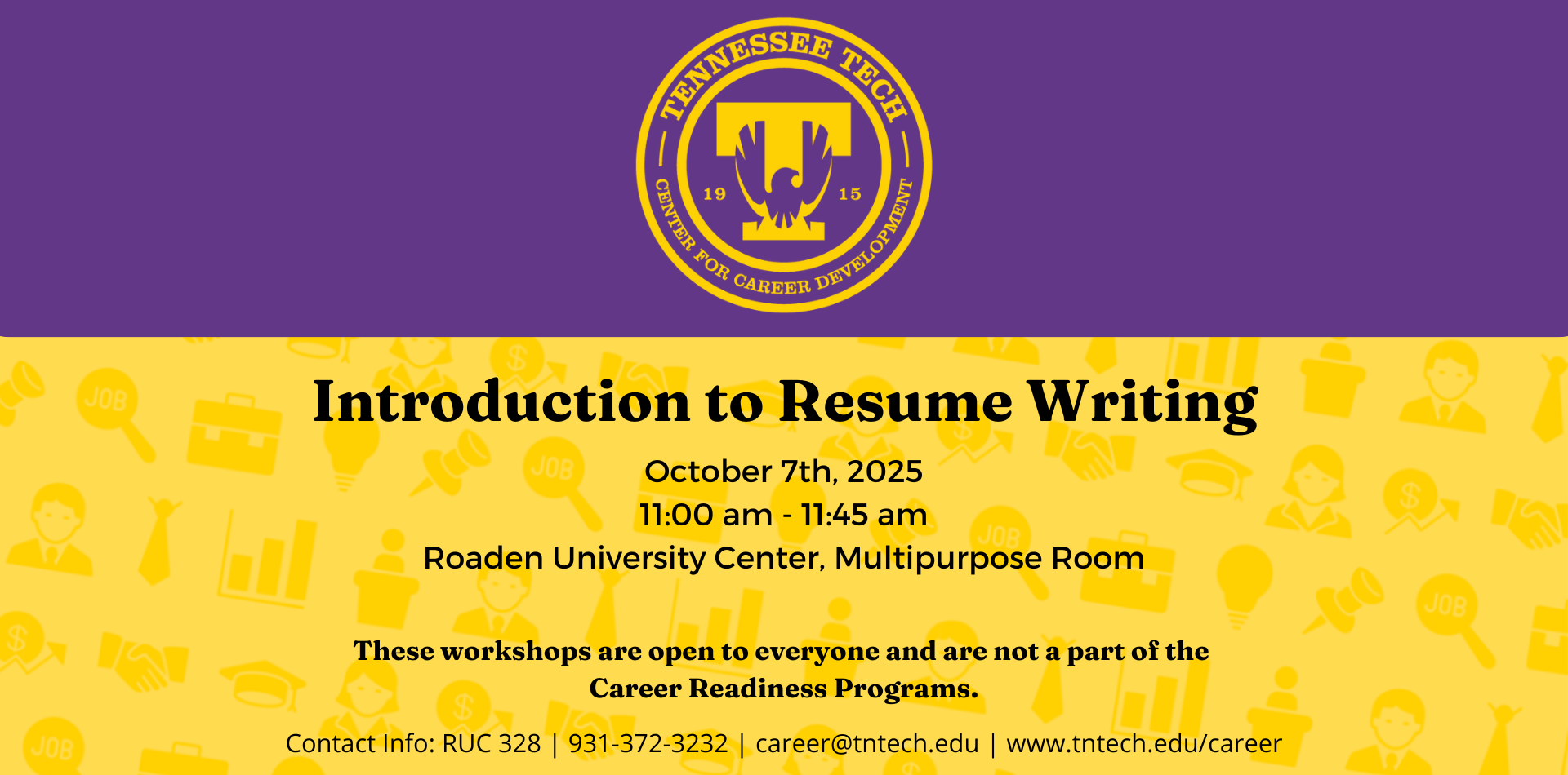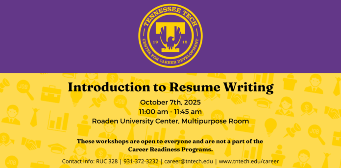 Join us Tues., Oct. 7, at 11 AM in the RUC Multipurpose Room to learn to craft a strong resume! This workshop is open to everyone but will NOT count toward any Career Readiness Certification.