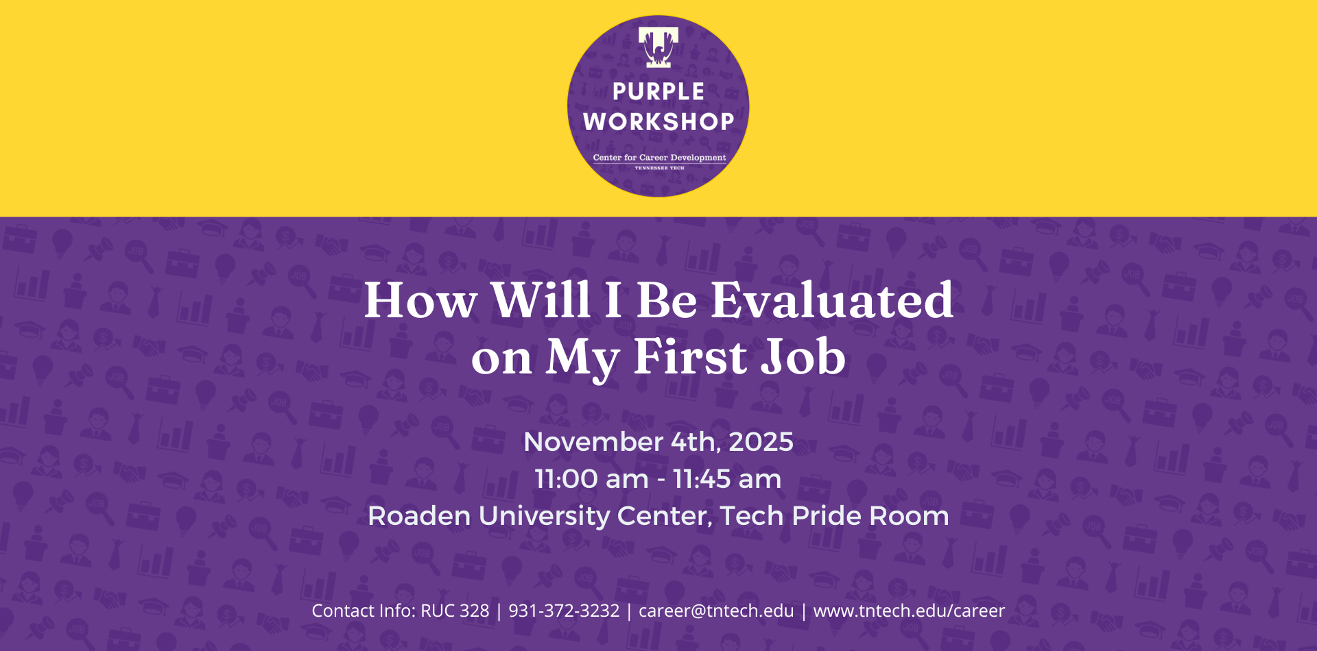 Join the Center for Career Development on Tues., Nov. 4 at 11 AM in the RUC 101 for a Purple Career Readiness Workshop focused on how you’ll be evaluated in your first job. Learn what employers look for and how to succeed from day one! Open to all majors and counts toward Purple Career Readiness Certification.