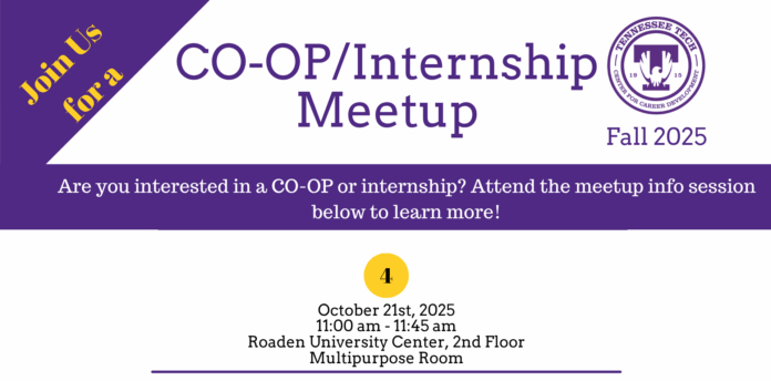 Join us Tues., Oct. 21 at 11 AM in the RUC Multipurpose Room a Co-op/Internship Meetup.  Learn how to become eligible for positions through our program. Attendance is required before accepting any Co-op/Internship offer. Don’t forget your Eagle Card!