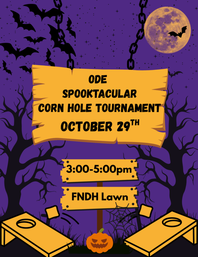 ODE Cornhole Tournament 10 FacebookTwitterPinterestWhatsApp ODE is hosting a cornhole tournament on Oct. 29th from 3 to 5 pm on the lawn of Foundation Hall.