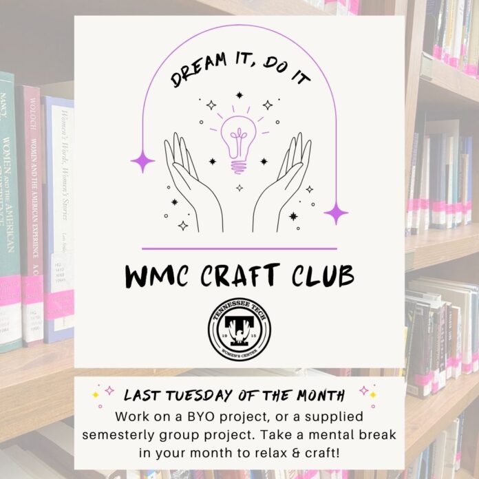 Craft Club is aimed to give a dedicated time and space, once a month, for creative engagement, peer connection and collaboration. Much like our past “socials” but with a creative twist! Bring your own project from home or work on a October themed project! Secure storage available! Be sure to wear your best costume to enter our contest for a bag of WMC SWAG!