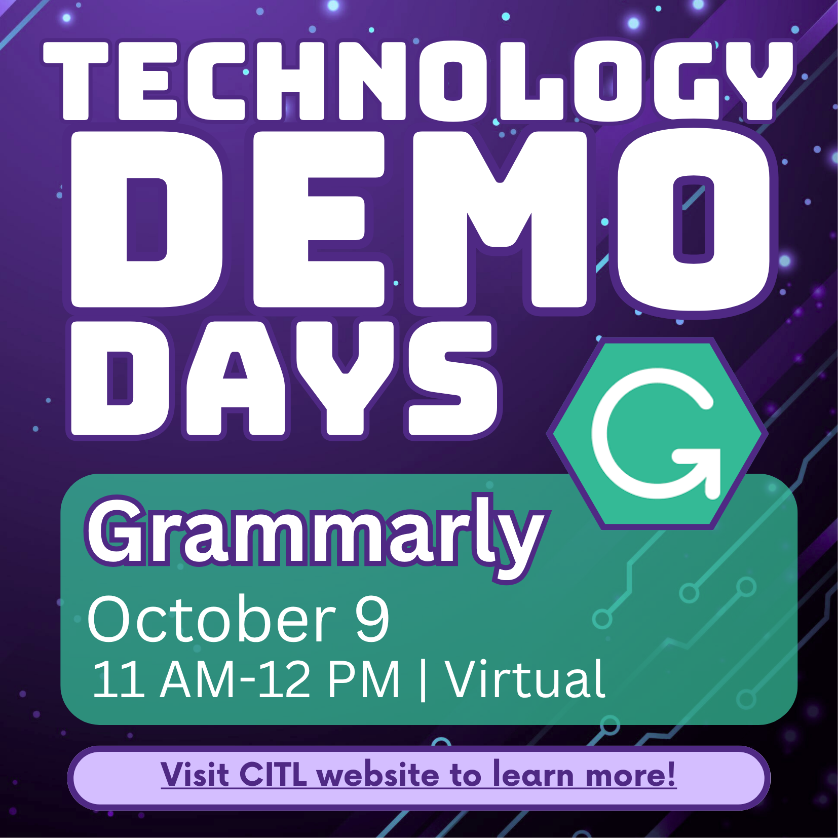 Register below and contact the citl@tntech.edu with questions. Learn more on Grammarly’s website.