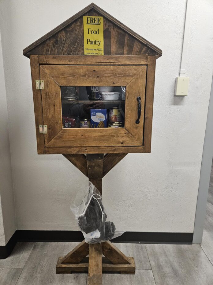 This free food box was established in 2017 in an effort to help alleviate campus food insecurities. Please take what you need, leave what you can.
