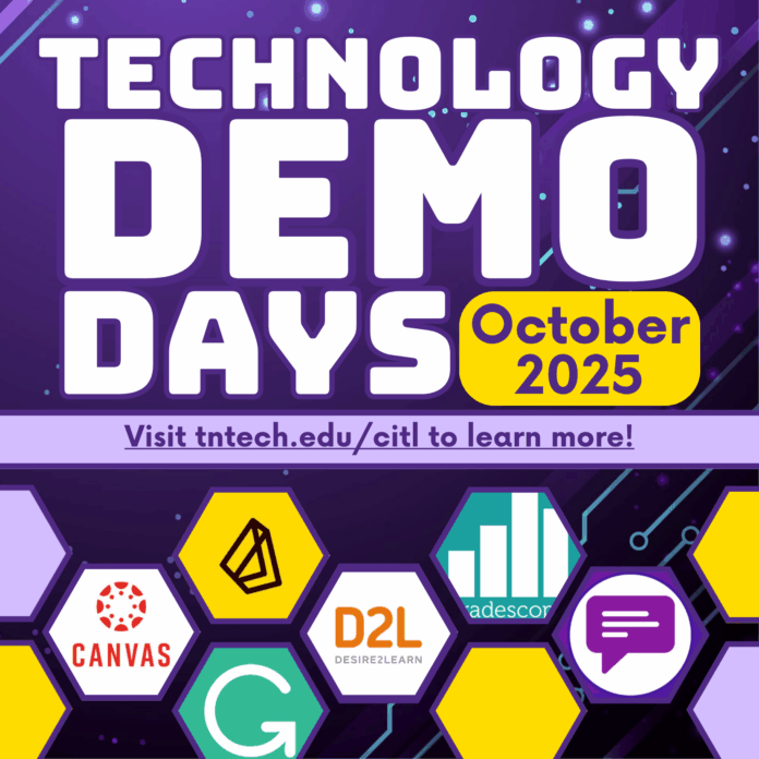 Join us throughout the month of October for educational technology demonstrations! Technologies include Canvas, D2L Brightspace, Feedback Loop, Grammarly, Atomic Jolt, and more. View a full schedule of upcoming demos and register to attend on the CITL website. Contact citl@tntech.edu with questions.