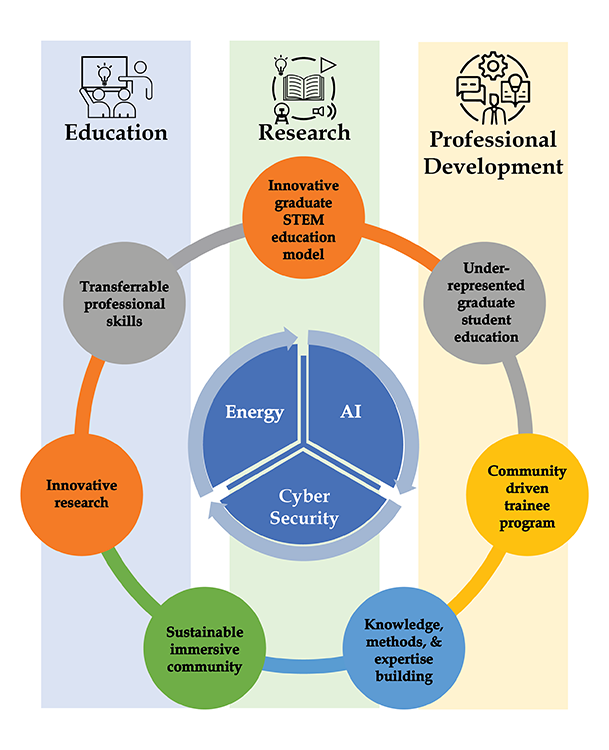 The NSF NRT-GCR, AI: Traineeship in the Convergence of AI, Energy, and Cybersecurity is accepting M.S. applications for ECE, CSC, and ME students for the Spring 2026 semester.