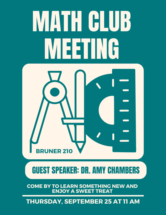 Math Club Meeting 39 FacebookTwitterPinterestWhatsApp Math Club meeting this Thursday, September 25th at 11am in Bruner 210. Dr. Chambers will be giving a talk called “The Big Hairy Body Problem.” Sound interesting? Come hear all about it while enjoying a sweet treat!