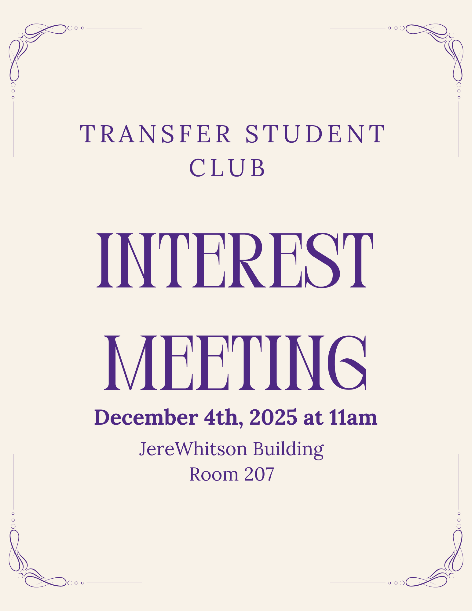 Transfer Student Organization Interest Meeting (Dec. 4)!
