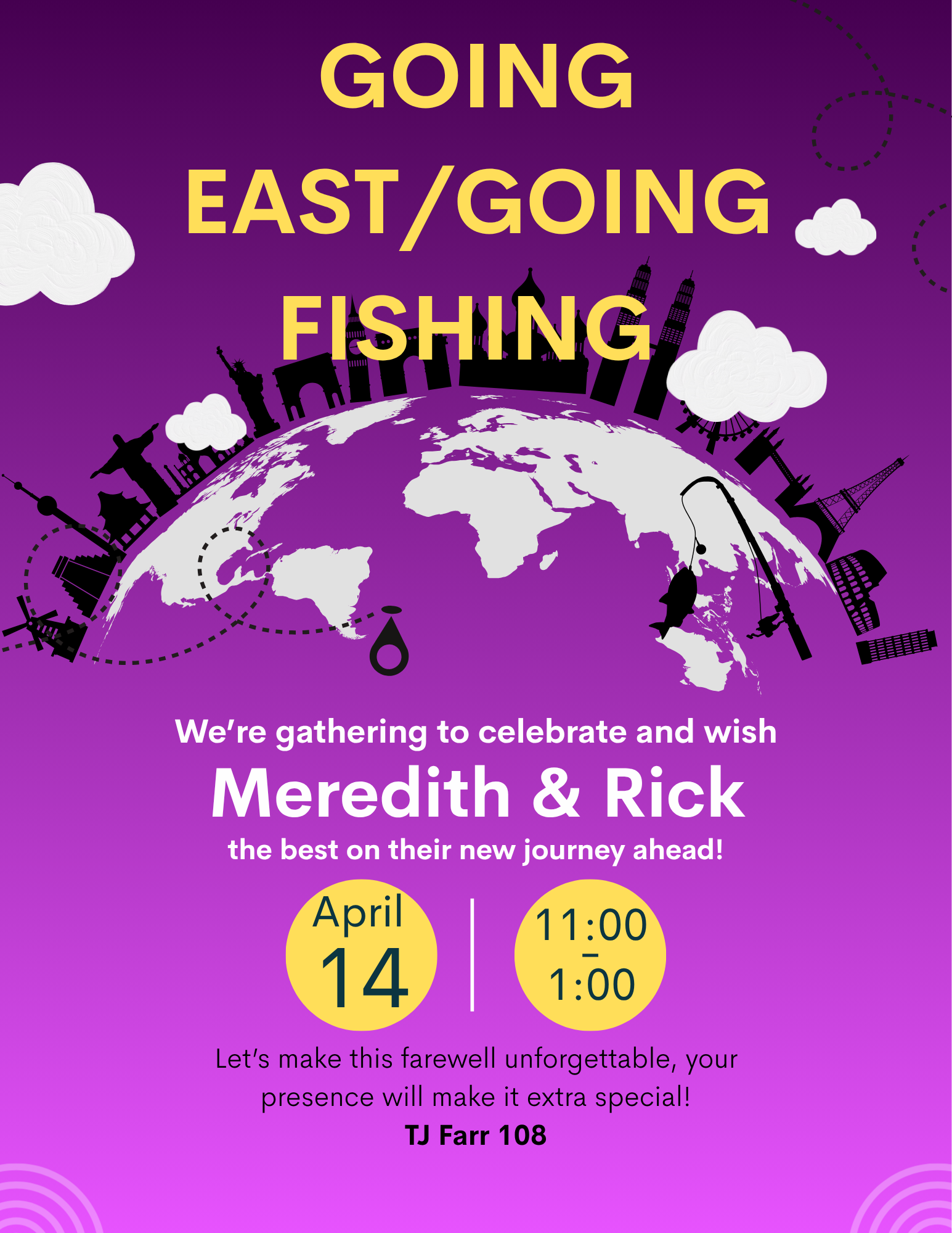 The College of Education and Human Sciences is hosting a reception for Meredith Lewis and Rick Moles on Tuesday, April 14, from 11:00 am to 1:00 pm in TJ Farr 108. Please join us as we celebrate Meredith and Rick and wish them the best on their new journey ahead!