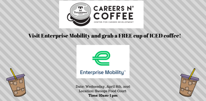 Take a break and enjoy a FREE cup of coffee while speaking with recruiters from Enterprise Mobility on Wed, April 8, at 10 a.m. in the RUC’s Swoops Food Court.