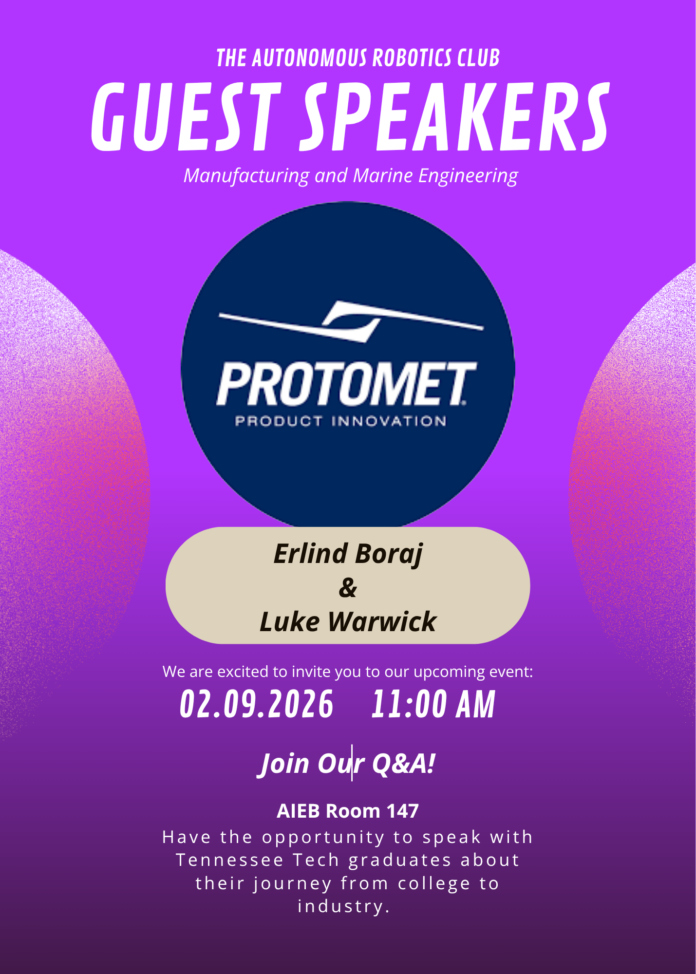 Autonomous Robotics Club’s Guest Speakers 10 FacebookXPinterestWhatsApp Join ARC in AIEB 147 during dead hour on Thursday, 4/9, to hear from Tech graduates and industry professionals who work at Protomet. They will be talking about their work and how to apply what we are learning in real world settings!