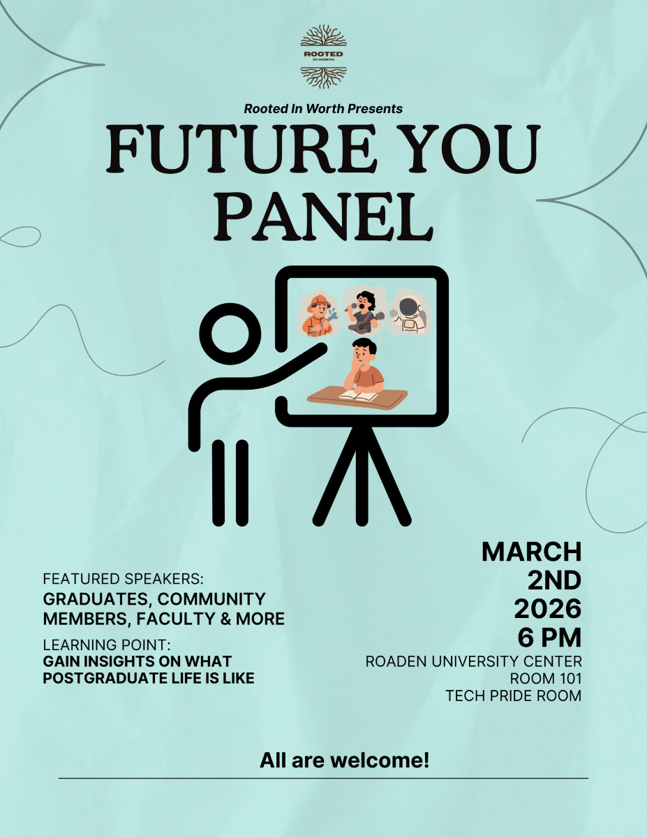 Rooted in Worth will be hosting Campus Conversations: Future You Panel, on Monday, March 2nd at 6:00 pm in the Roaden University Center Tech Pride Room (101).