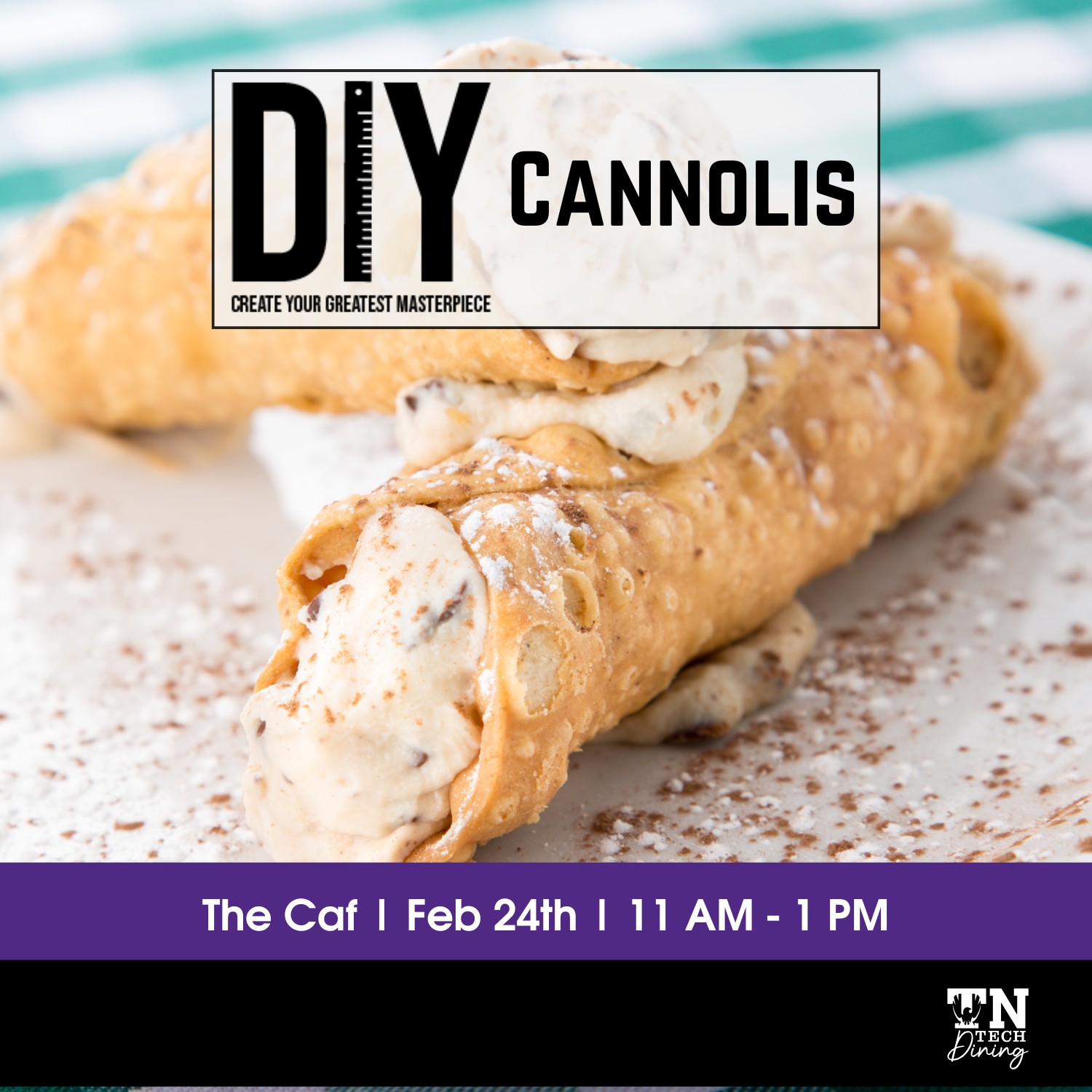 DIY Cannoli Bar 14 FacebookTwitterPinterestWhatsApp Experience our DIY Cannoli Bar in the Caf on February 24, 11a-1p, featuring a customizable cannoli with a variety of ways to make it your own masterpiece. What a creative and delicious way to enjoy a classic dessert.