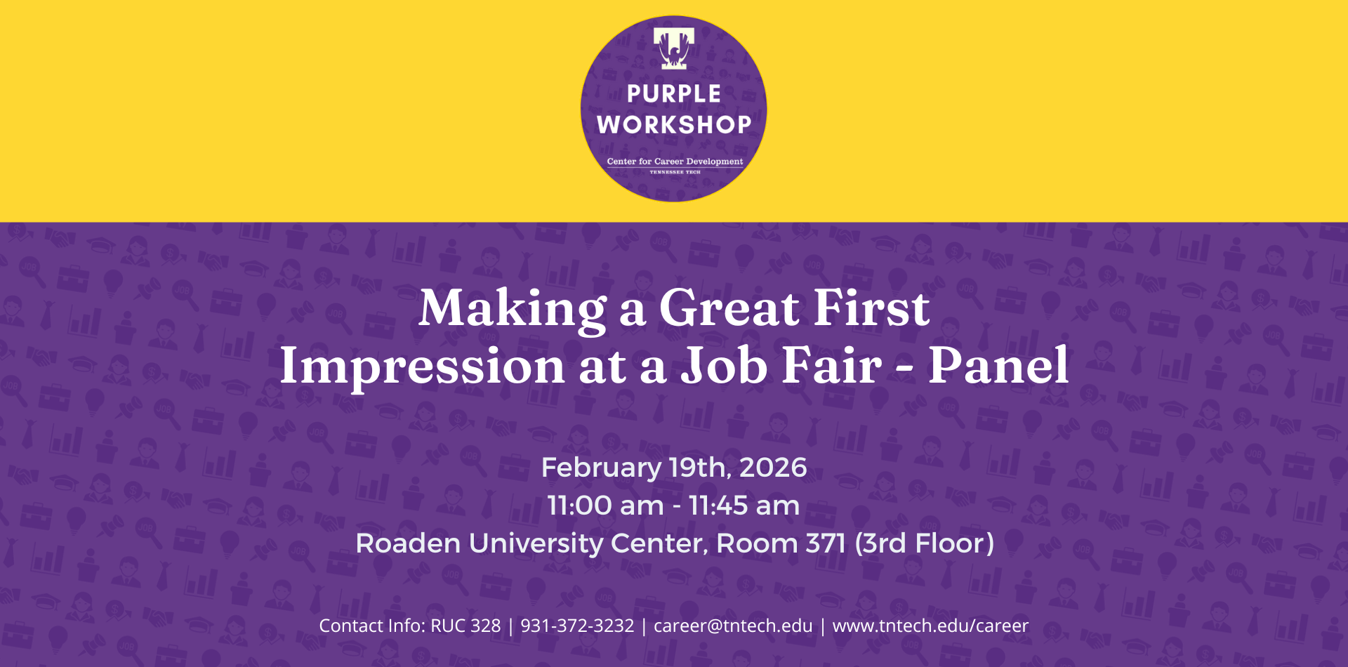 To learn more about this and upcoming events, visit: tntech.edu/career/events.php