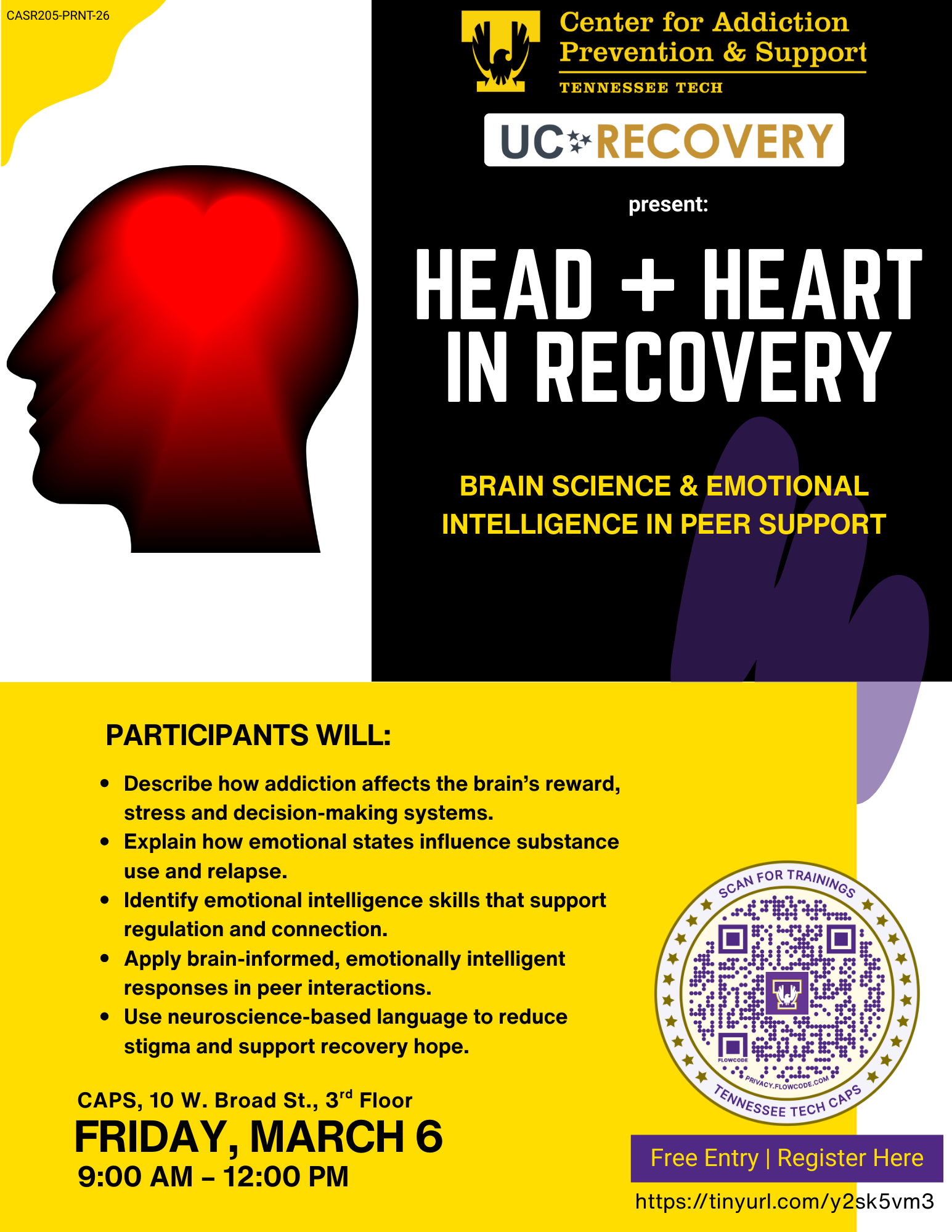 CAPS presents a free training that integrates practical neuroscience of addiction with emotional intelligence skills to help peer specialists understand how brain changes, stress, and emotions influence substance use, relapse, and recovery. Participants will learn how addiction affects the brain’s reward, stress, and decision-making systems, why emotions often drive behavior, and how emotionally regulated peer relationships support healing. The session emphasizes stigma reduction, trauma-informed engagement, and sustainable peer practice in rural and community settings. Register here.