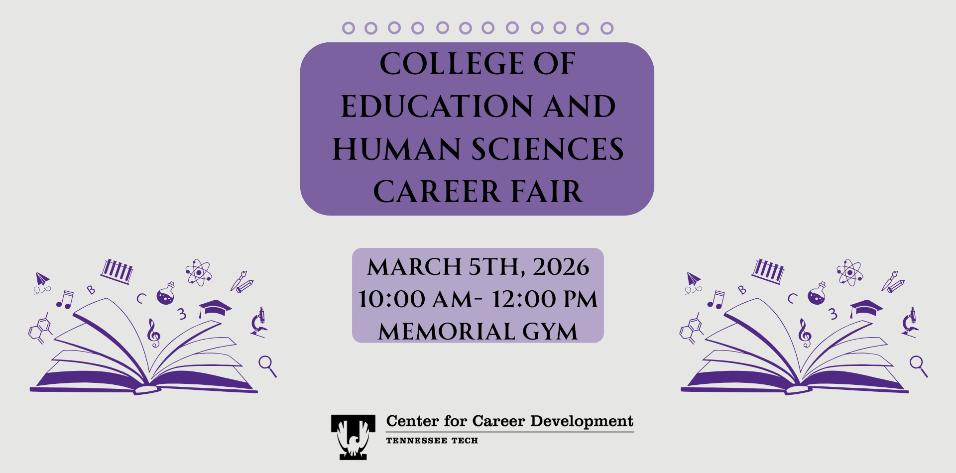This career fair is hosted by the Center for Career Development. To learn more about this and upcoming events, visit: tntech.edu/career/events.php