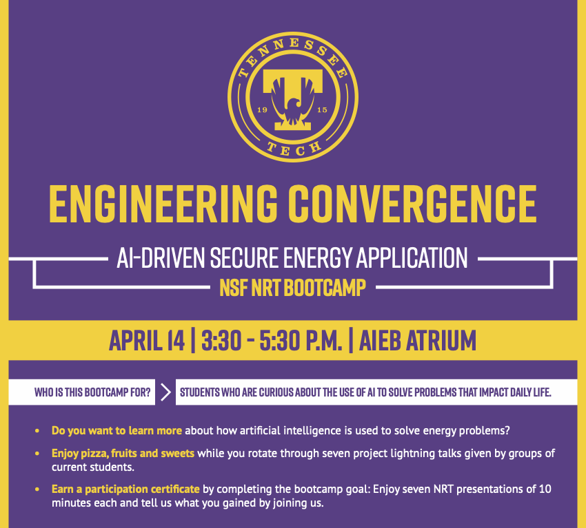Want to learn how artificial intelligence is used to solve energy challenges? Join this interactive bootcamp April 14 from 3:30-5:30 p.m. in the AIEB atrium. Explore the intersection of energy technologies, AI and cybersecurity while rotating through seven student-led lightning talks and earn a participation certificate. RSVP here by April 10.