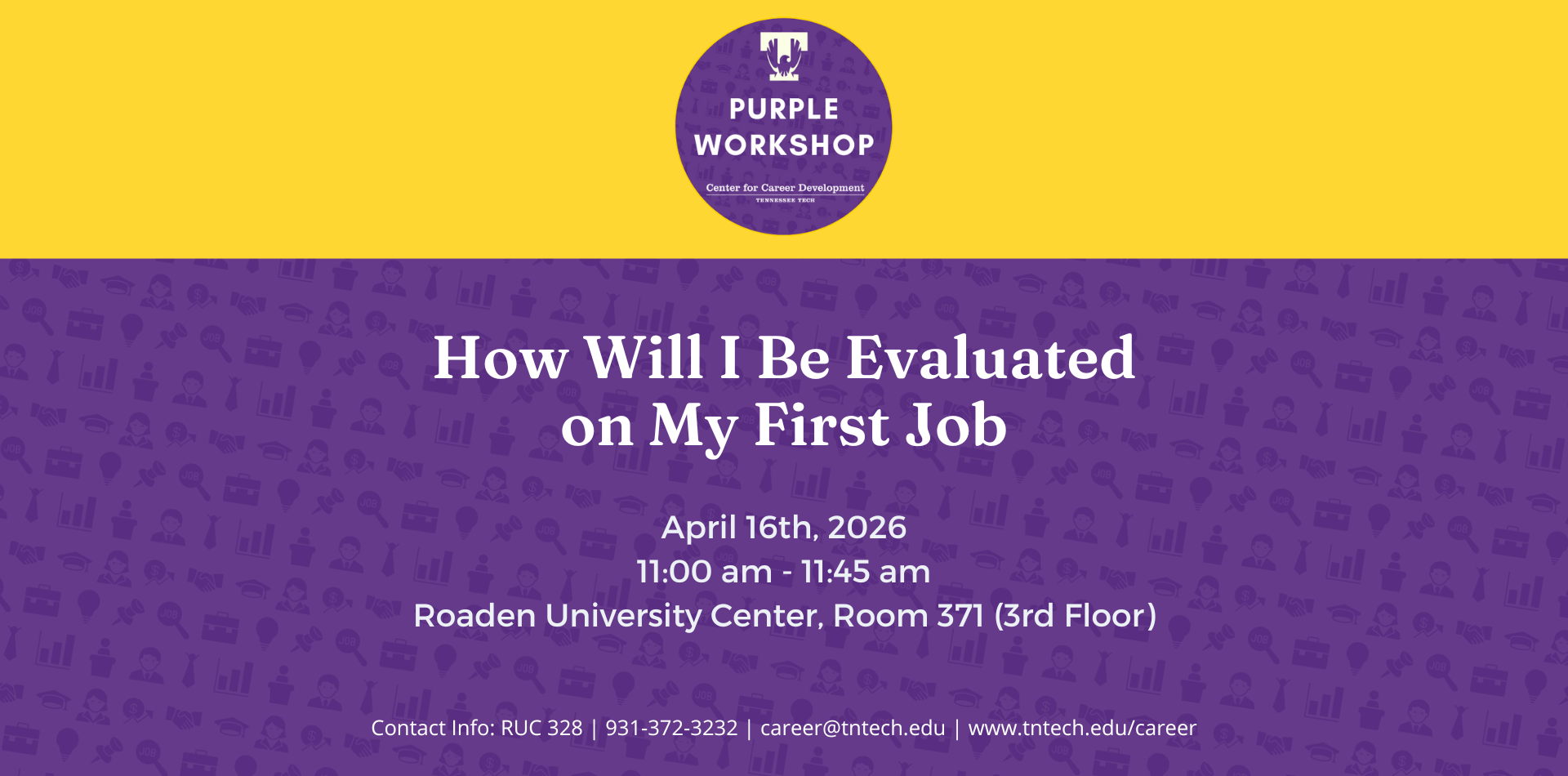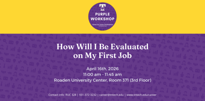 Join us Thurs, April 16, at 11 a.m. in room 371 at the Roaden University Center for a Purple Career Readiness Workshop focused on how you will be evaluated in your first job. Learn what employers look for and how to exceed from day one!