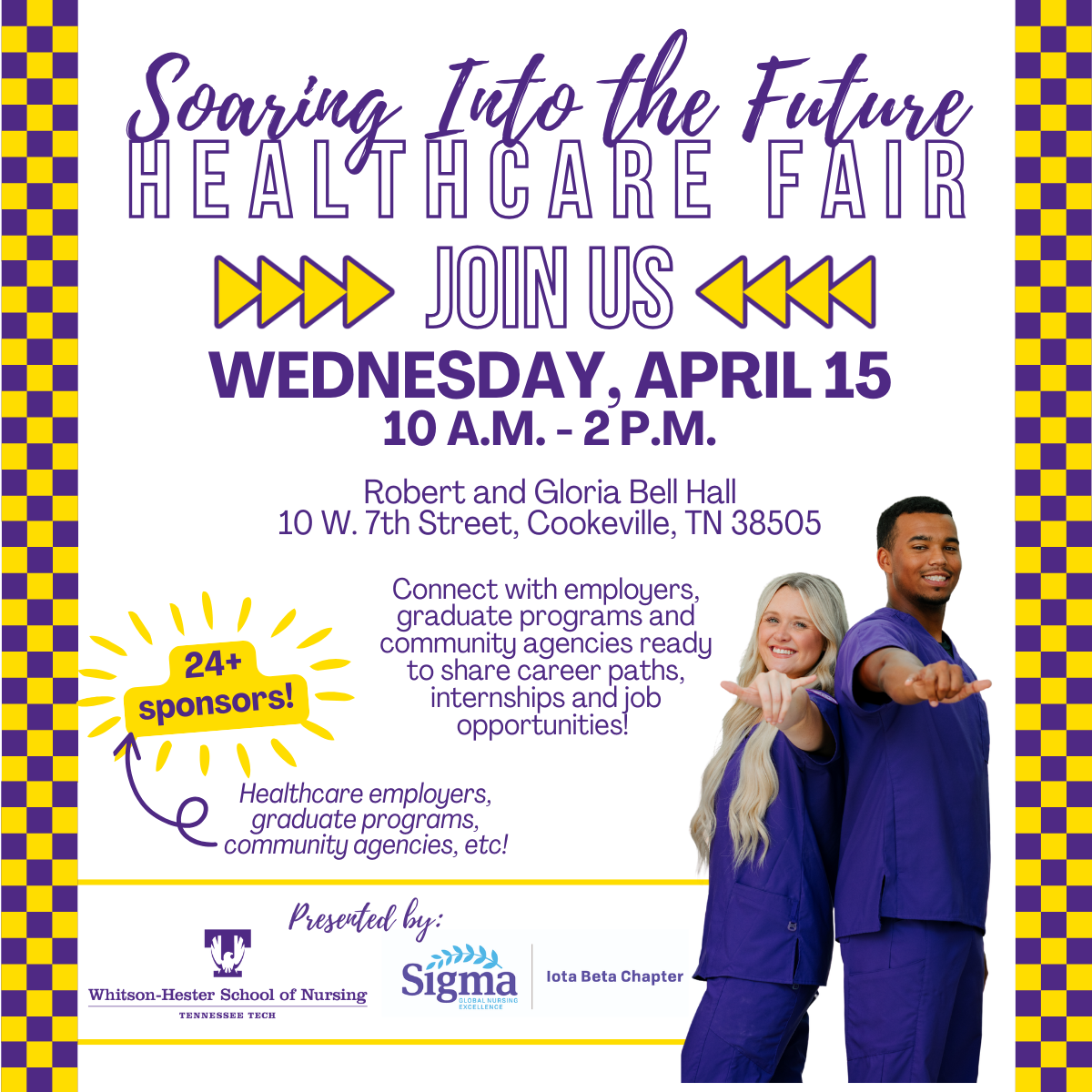 Considering a career in healthcare? Don’t miss the Soaring Into the Future Healthcare Fair on Wednesday, April 15, from 10 a.m.–2 p.m. in Robert and Gloria Bell Hall!