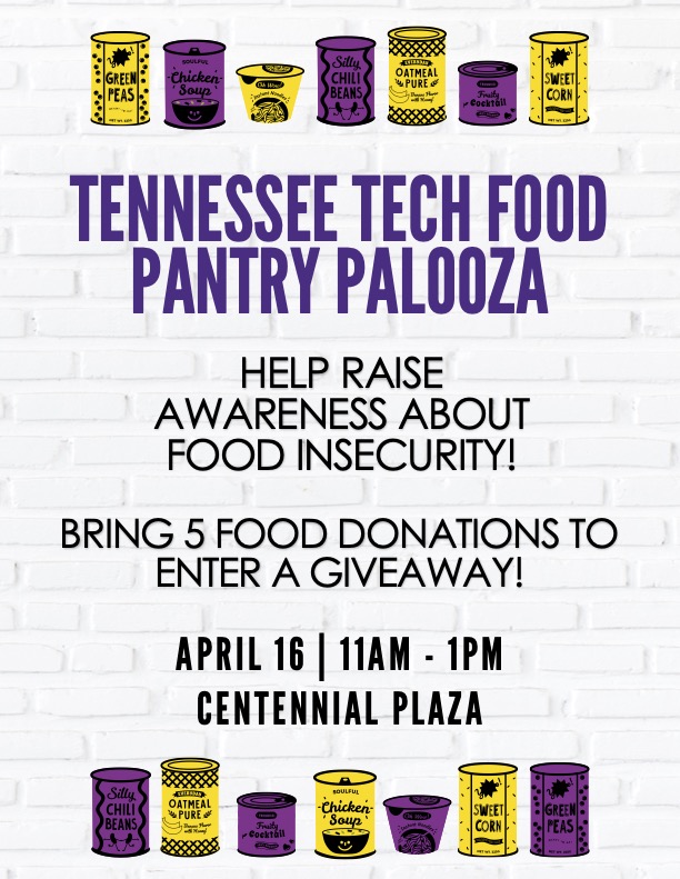 The goal of the Palooza is to bring together campus resources, student organizations, and the community to help raise awareness about food insecurity while connecting students with helpful services and opportunities. Please reach out to Morgan Walls (Mgmingle42@tntech.edu) for any questions!