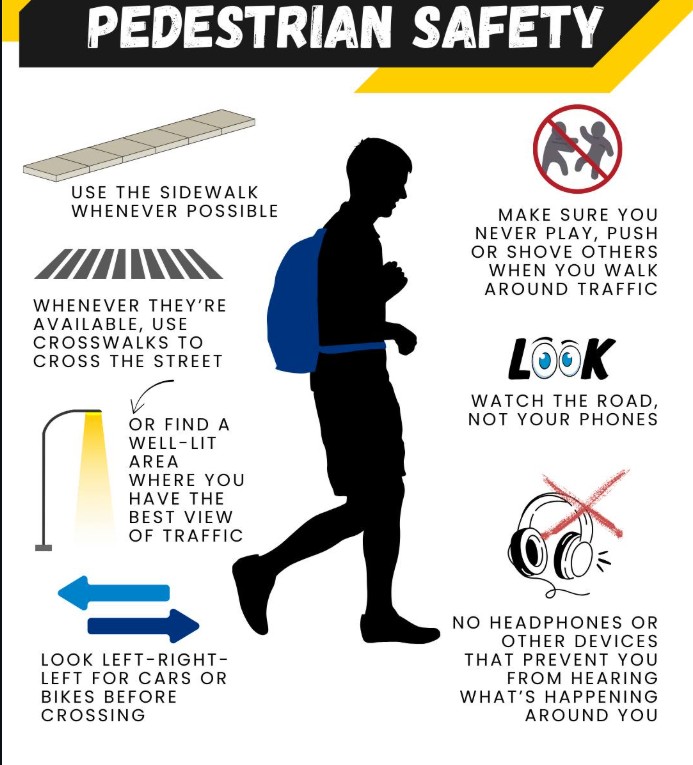 TTU Police reminds students: Always use crosswalks, follow signals, and stay alert while walking or biking on campus. Helmets and reflective gear save lives. For more info, visit tntrafficsafety.org/bike-ped and review TTU Policy 191.