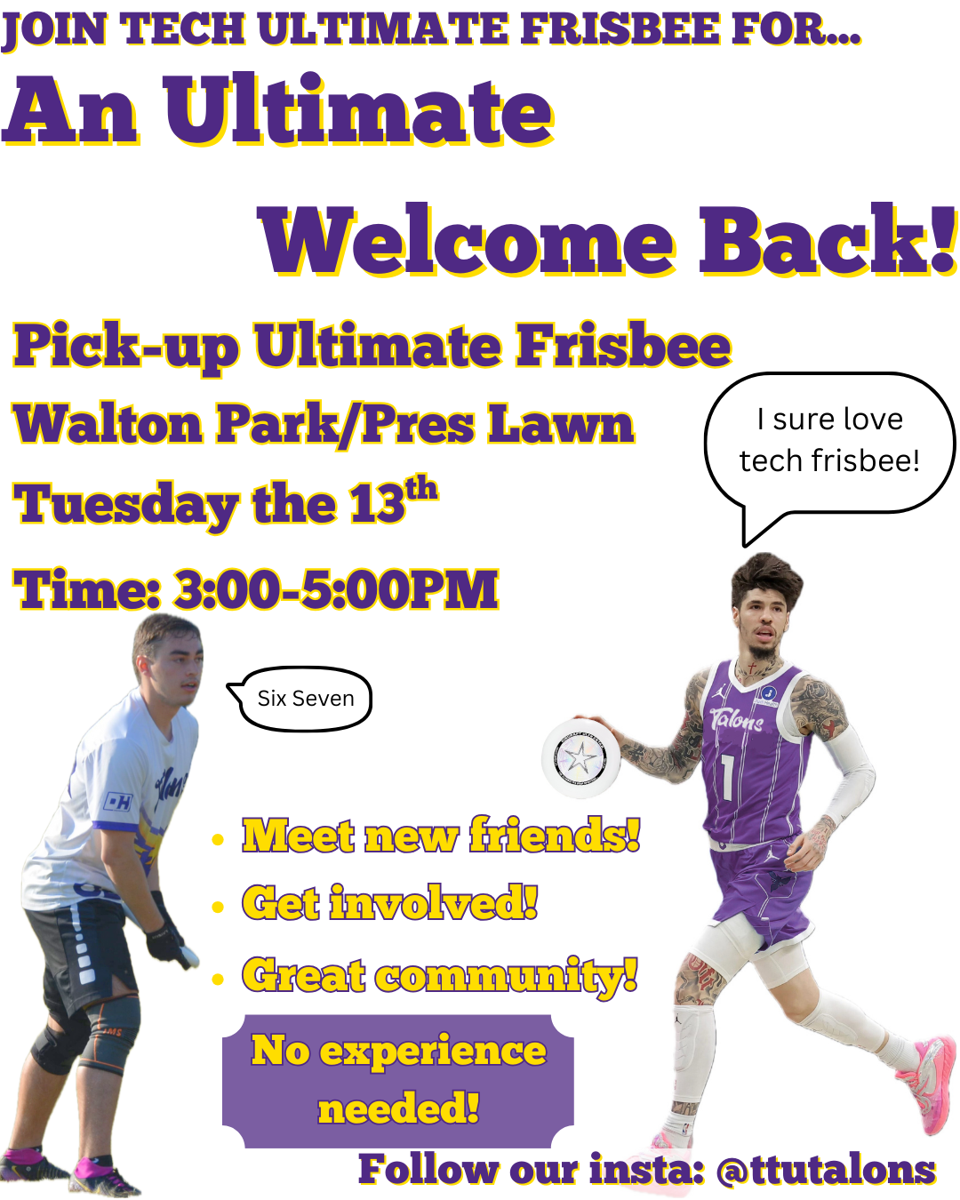 If you have any questions, you can send a message to @ttutalons on Instagram, or email tntechultimateclub@gmail.com.