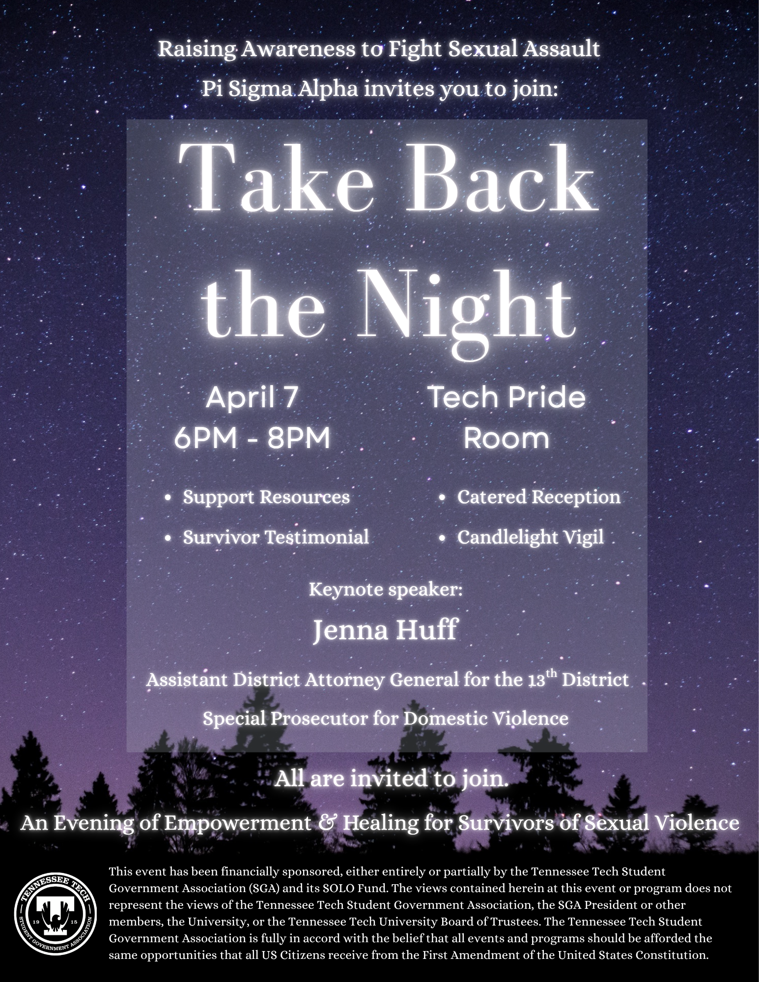 Pi Sigma Alpha invites you to join us for our Sexual Assault Awareness Month event, Take Back the Night!